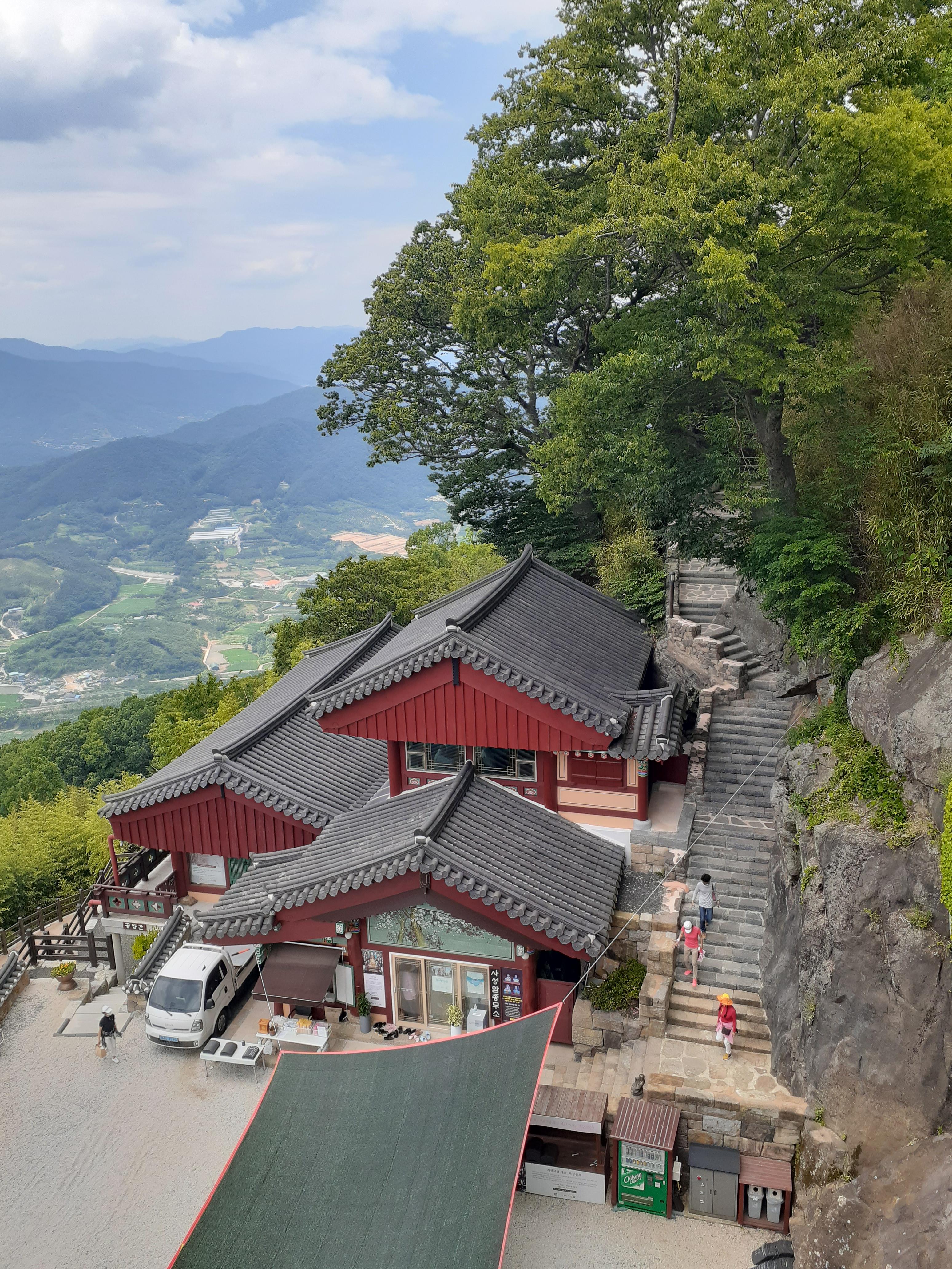 Last weekend, 4 families of my parents in law went to Gurye traditional market. We bought watermelons and corns and so on. It was so hot under the sun. When we entered an eatery to have lunch it was like heaven because it was too hot outside. After we were sightseeing around the market we drove to the Sasungarm temple, which is gorgeous. There were not many people this time because it was dazzling. On the way back home we dropped by the Hadong dam, which was almost dried up. I could count the level empty 20meters. It should rain soon here in Southern part of Korea. The weatherman forecasted rain for the last week but it didn't rain.